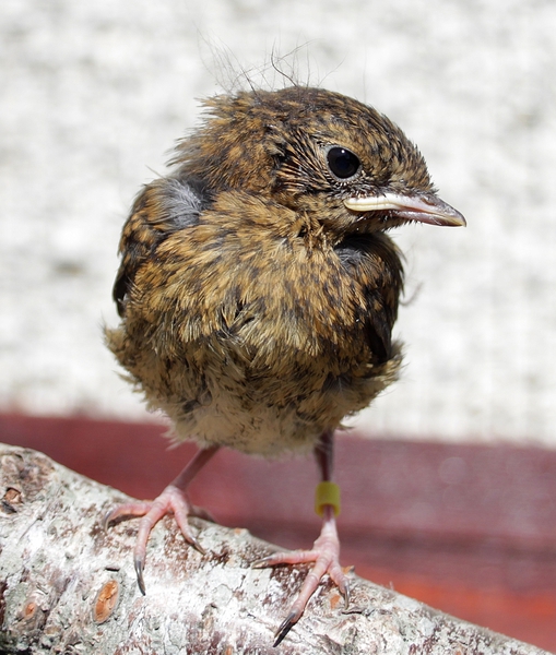 Birds such as robins, blackbirds, sparrows and song thrushes often leave the nest before they can fly properly and hop or flutter around on the ground for a few days. They have short wings and a short tail, because the feathers are still growing. Their parents will continue to feed them and warn them about predators. If their parents are away foraging or caring for their other youngsters the baby may be left alone for a few hours. If he has only just left the nest, he may sit out in the open and have no fear of humans or cats, but he should look alert, be mobile and be able to perch on a branch or on your finger. You can help a healthy fledgling by moving them to a safe area nearby where their parents will still be able to hear their calls and find them. If it is going dark, you can bring them inside in a box overnight and put them back outside in the morning. It is a myth that their parents will abandon them if they have been touched by a human. Inside a dense, prickly bush is ideal so cats can't see them. Keep your cats and dogs indoors or supervised if a fledgling is in your garden, and if their parents do not return in three or four hours, or they seem sick or injured in any way, Contact Us.