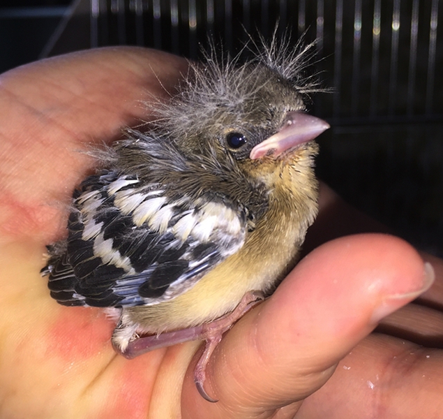 Many fledglings who should be left alone can be recognized by their yellow gape (the fleshy corners of their beak) and short tail and wings. If they have a long tail and wings they really should be able to fly and may have an injury. Conversely, adult birds who have been caught by cats but managed to escape often have their tail plucked out, but will not have a yellow gape. If you aren’t sure if a bird needs help or not, Contact us and and a us a photo or video of the bird if possible so we can see what age they are and tell if they seem sick or injured.
